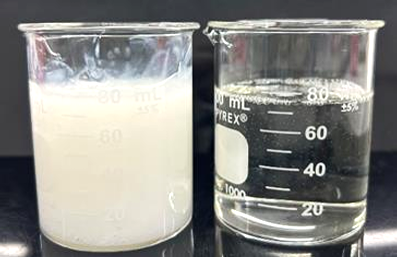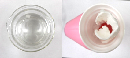 例②:酸性の液体と混ざったことで塊ができた状態
